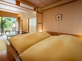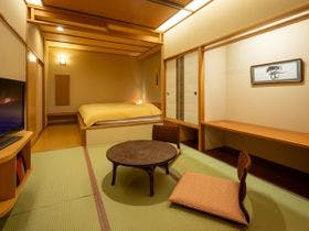 gotoキャンペーンを利用して3階の部屋に宿泊しました。部屋は6畳の和室とベッドが2台ある部屋で少し狭さを感じました。でもふたりなら落ち着く空間かなと思います。部屋の露天風呂はかけ流しで湯温も熱く外の寒さが気持ちよいくらいでした。隣にシャワールームもあります。部屋のアメニティはオムニサンスでした。部屋の冷蔵庫の飲み物は無料でした。缶ビールと缶酎ハイ、500のペットボトルのお茶、ミネラルウォーターが...
