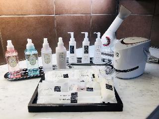 テレビ、衛星放送(無料)、電話、インターネット接続(無線LAN形式)、湯沸かしポット、お茶セット、冷蔵庫、ドライヤー、ズボンプレッサー(貸出)、電気スタンド、アイロン(貸出)、CDプレイヤ-、加湿器、個別空調、洗浄機付トイレ、石鹸(固形)、石鹸(液体)、ボディーソープ、シャンプー、リンス、洗顔ソープ、ハミガキセット、カミソリ、シャワーキャップ、くし、ブラシ、タオル、バスタオル、ナイトウェア、ナイトガウン、バスローブ、浴衣、くつろぎ着・たび、くつろぎ着の作務衣、スリッパ、パジャマ、湯沸かしポット(貸出)、金庫