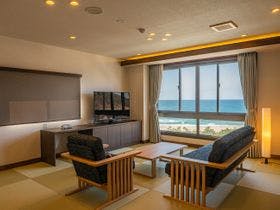 ホテル内は温泉もあるし、全部屋から海が眺望出来て最高でした。お部屋も綺麗で広めでゆったりでした。時間のある時にゆっくりくつろぎたい人には良いかもです。夕食はホテル内はとても高くて産地のものではなく取り寄せた冷凍ものとの話を聞いてたのでやめました。海の日に行きましたが観光客が少なかったため外の食堂は営業してる店がほとんどなくて歩いて行ける距離にあるスーパーで買って部屋で食べました。夕食以外は全てパー...