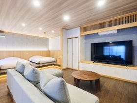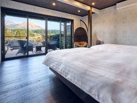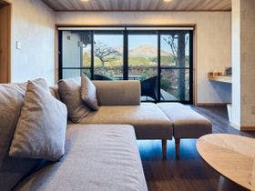 古民家のような離れの入り口。雰囲気あります。\ あそ望タイプに宿泊。露天風呂と内湯があり、朝靄のかかる、阿蘇連山を眺めての露天風呂は最高でした、囲いがあるので立たないと見れませんが。\お部屋は二間続きで広々としており、アメニティも充実しています。部屋全体が新築のようにきれい。\朝夕は神楽殿の前で、掘りごたつしきの個室で頂きます。\2月の一番寒い時期、エアコンがあまり効いておらず、足元もとても寒かっ...