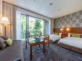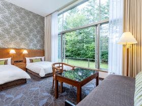 ロビーは開放感があり心地よい空間でした。部屋も清潔感があり、窓から見える緑豊かな景色に癒されます。大浴場も広々としていて旅の疲れをゆっくり癒すことができました。旧軽井沢銀座商店街へのアクセスも良く、散策に便利な立地も高評価です。