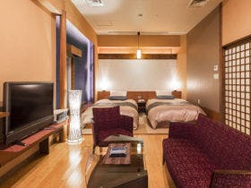テレビ、衛星放送、衛星放送(無料)、電話、インターネット接続(無線LAN形式)、湯沸かしポット、お茶セット、冷蔵庫、ドライヤー、電気スタンド、アイロン(貸出)、加湿器(貸出)、個別空調、洗浄機付トイレ(一部)、石鹸(固形)、ボディーソープ、シャンプー、リンス、洗顔ソープ、ハミガキセット、カミソリ、くし、ブラシ、タオル、バスタオル、浴衣、スリッパ、湯沸かしポット(貸出)