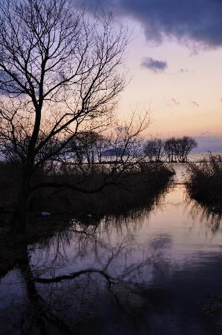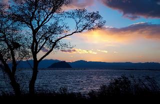 夕陽と野鳥観察の宿