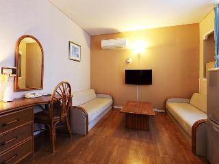 テレビ、電話、インターネット接続(無線LAN形式)、湯沸かしポット、お茶セット、冷蔵庫、ドライヤー、ズボンプレッサー(貸出)、電気スタンド、アイロン(貸出)、CDプレイヤ-(貸出)、個別空調、洗浄機付トイレ、ベビーベッド、ボディーソープ、シャンプー、リンス、コンディショナー、ハミガキセット、カミソリ、ブラシ、タオル、バスタオル、ナイトウェア、スリッパ、パジャマ、電子レンジ(一部・要予約)、ミニキッチン(一部・要予約)、金庫