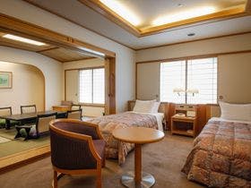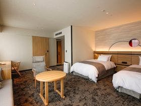 テレビ、衛星放送、電話、インターネット接続(無線LAN形式)、湯沸かしポット、お茶セット、冷蔵庫、ドライヤー、ズボンプレッサー(貸出)、アイロン(貸出)、加湿器(貸出)、加湿器(一部)、洗浄機付トイレ、ベビーベッド、石鹸(液体)、ボディーソープ、シャンプー、リンス、コンディショナー、洗顔ソープ、ハミガキセット、カミソリ、くし、ブラシ、タオル、バスタオル、くつろぎ着の作務衣、スリッパ、金庫