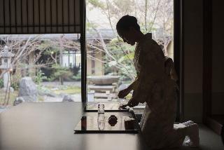 到着してすぐにグリーンティーを出してもらえるのですが、甘すぎるので残しました。\部屋は新しくないですが、キレイに掃除されていました。\夕朝食とも仕切りのないレストラン食なので、他のお客さんがスタッフから受けた料理説明をこちらは受けなかったな〜など気になりました。\食事自体は、朝夕ともまあまあ美味しかったです。\\外国人スタッフが一生懸命働いているのが印象に残りました。